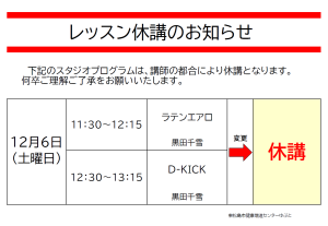 成人プログラム(スタジオ・アクア)参加費改定のご案内