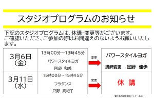 成人スタジオプログラム休講・変更のお知らせ