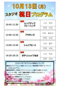 10月13日(月)は下記の通りのプログラムを実施いたします。 内容をご確認いただき、ご参加下さいますようお願い申し上げます。
