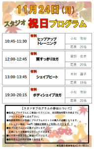 11月24日(月)祝日成人プログラムを開講いたします。以下よりご確認ください。 皆様のご参加をお待ちしております。