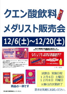 サプリメント【メダリスト】販売会のご案内です。